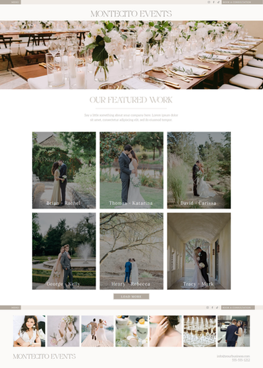 Montecito Website Template – We designed this clean, modern template with a light pink color palette, perfect for wedding and event planners.
